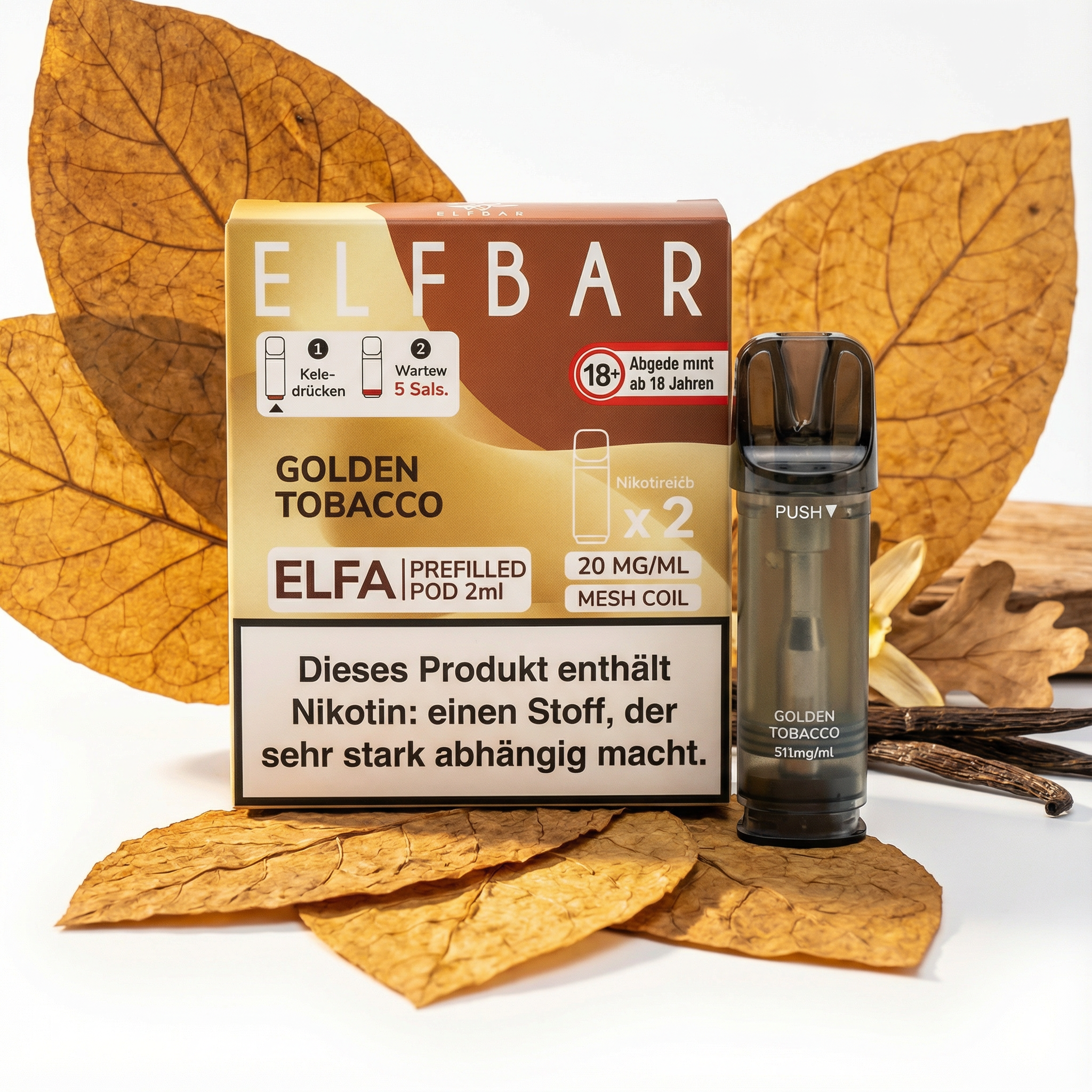 2 × vorbefüllte Elfbar ELFA Pods Golden Tobacco (je 2 ml)