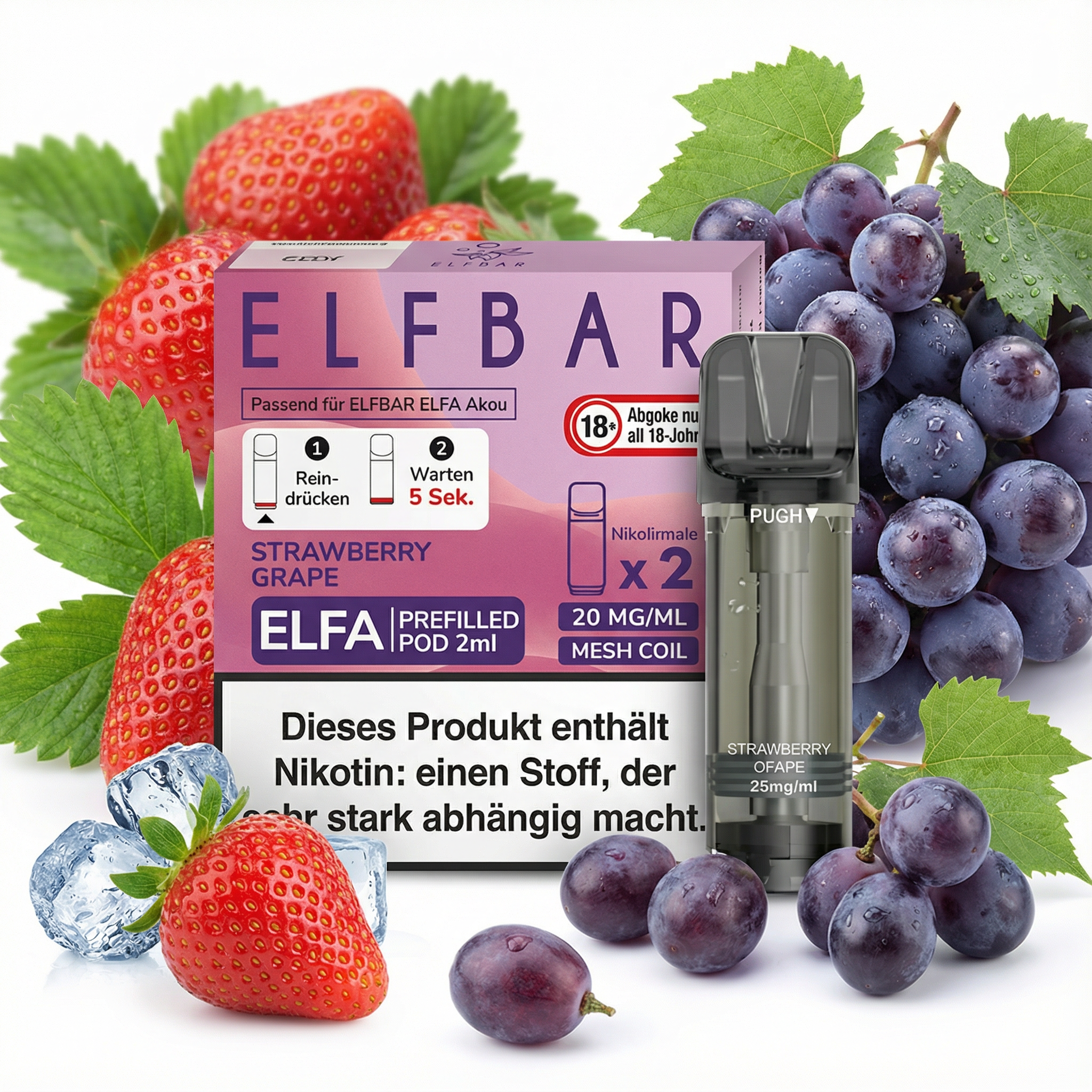 2 × vorbefüllte Elfbar ELFA Pods Strawberry Grape (je 2 ml)
