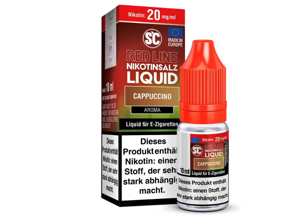 Das SC Red Line Nikotinsalz Liquid Cappuccino bietet den vollmundigen Geschmack frisch gebrühten Kaffees, verfeinert mit einer cremigen Milchnote. Harmonisch, mild und angenehm rund – ideal für Dampfer, die klassische Kaffee-Aromen ohne Bitterkeit bevorzugen.